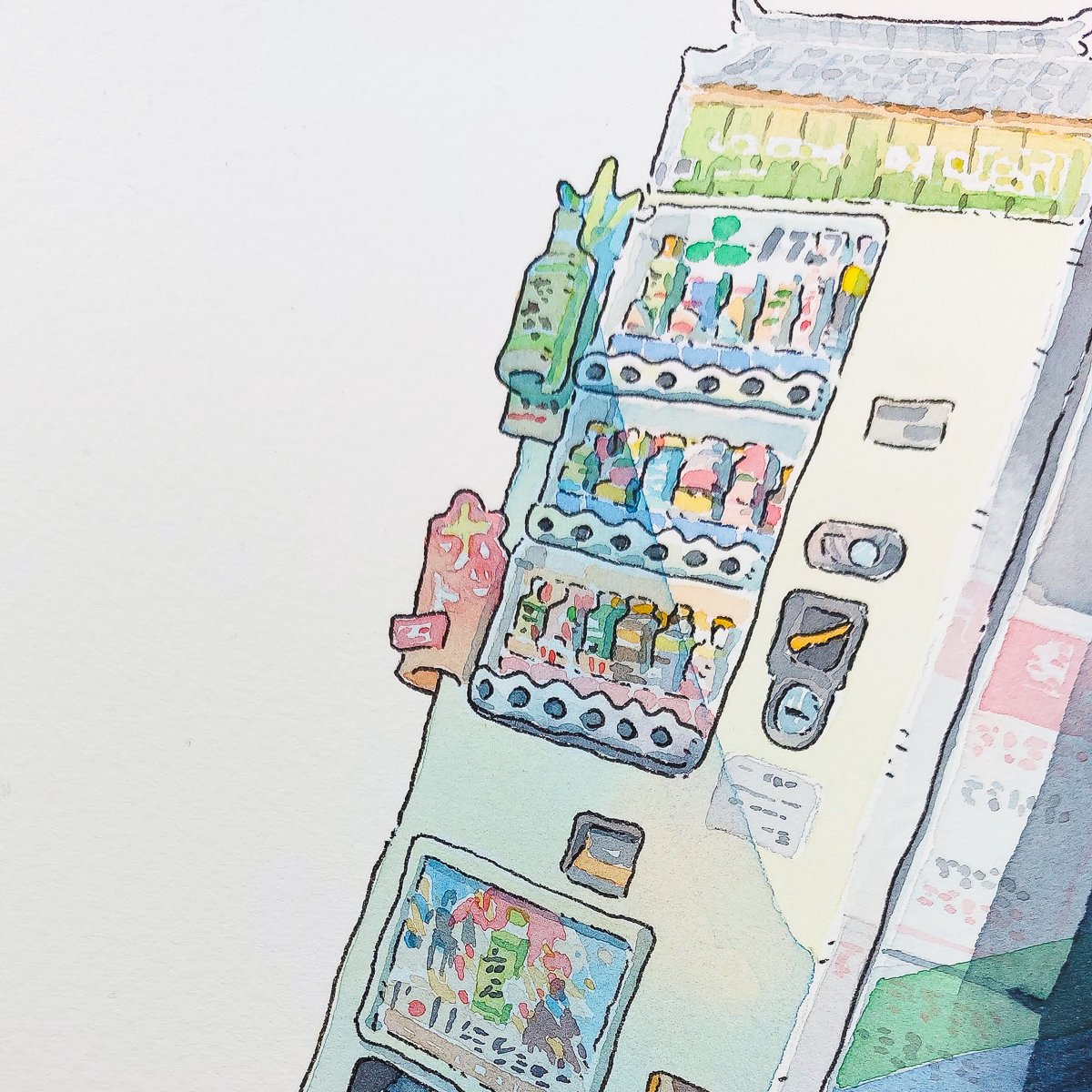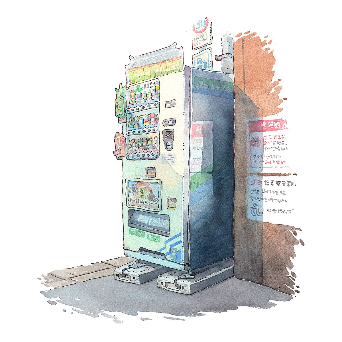 Ilustración original en acuarela inspirada en una tradicional máquina expendedora japonesa.